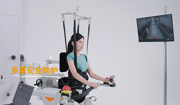 步態(tài)訓(xùn)練與評(píng)估系統(tǒng) A3-2,是一款針對(duì)步行功能障礙進(jìn)行高效康復(fù)訓(xùn)練的下肢康復(fù)機(jī)器人。產(chǎn)品由計(jì)算機(jī)控制系統(tǒng)、步態(tài)矯正裝置系統(tǒng)、動(dòng)靜態(tài)減重系統(tǒng)、醫(yī)用跑臺(tái)系統(tǒng)以及情景互動(dòng)訓(xùn)練系統(tǒng)五大模塊組成。它可以使患者在直立體位下通過(guò)不斷重復(fù)且軌跡固定的步態(tài)訓(xùn)練,強(qiáng)化正常步態(tài)記憶,促進(jìn)患者本體感覺(jué)的輸入與正確運(yùn)動(dòng)模式的形成,從而加強(qiáng)大腦結(jié)構(gòu)和功能重塑,建立正確的行走模式并有效的鍛煉其相關(guān)肌肉與關(guān)節(jié),加速下肢功能的恢復(fù)。既能讓平衡差、肌力差、無(wú)法站立的惠者盡早進(jìn)行步行訓(xùn)練,也能讓處于步行訓(xùn)練期的患者得到從足跟著地到足尖離地的完整性步態(tài)周期訓(xùn)練,是不斷重復(fù)的標(biāo)準(zhǔn)化生理步態(tài)模式。