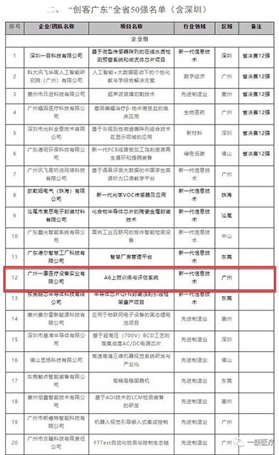 ▲“創(chuàng)客廣東”全省50強(qiáng)部分名單